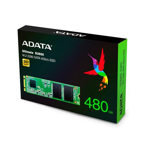 The ADATA Ultimate SU650 M.2 2280 SSD features 3D NAND Flash, a high-speed controller, and up to 480GB capacity. It delivers read/write performance of up to 550/510MB/s and greater reliability than 2D NAND SSDs. The SU650 sports SLC caching and advanced LDPC ECC technology to ensure optimized performance and data integrity.